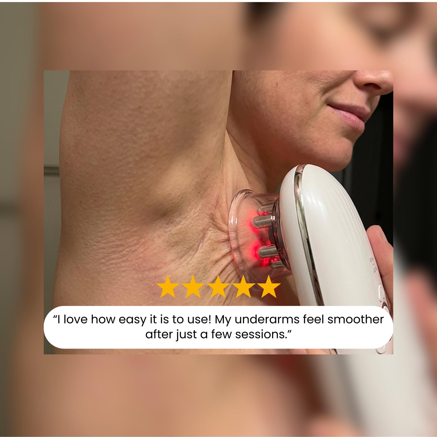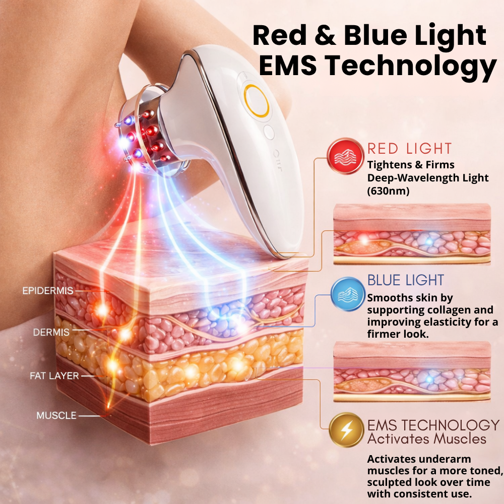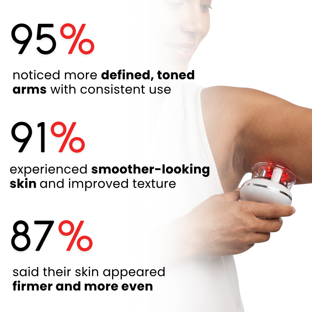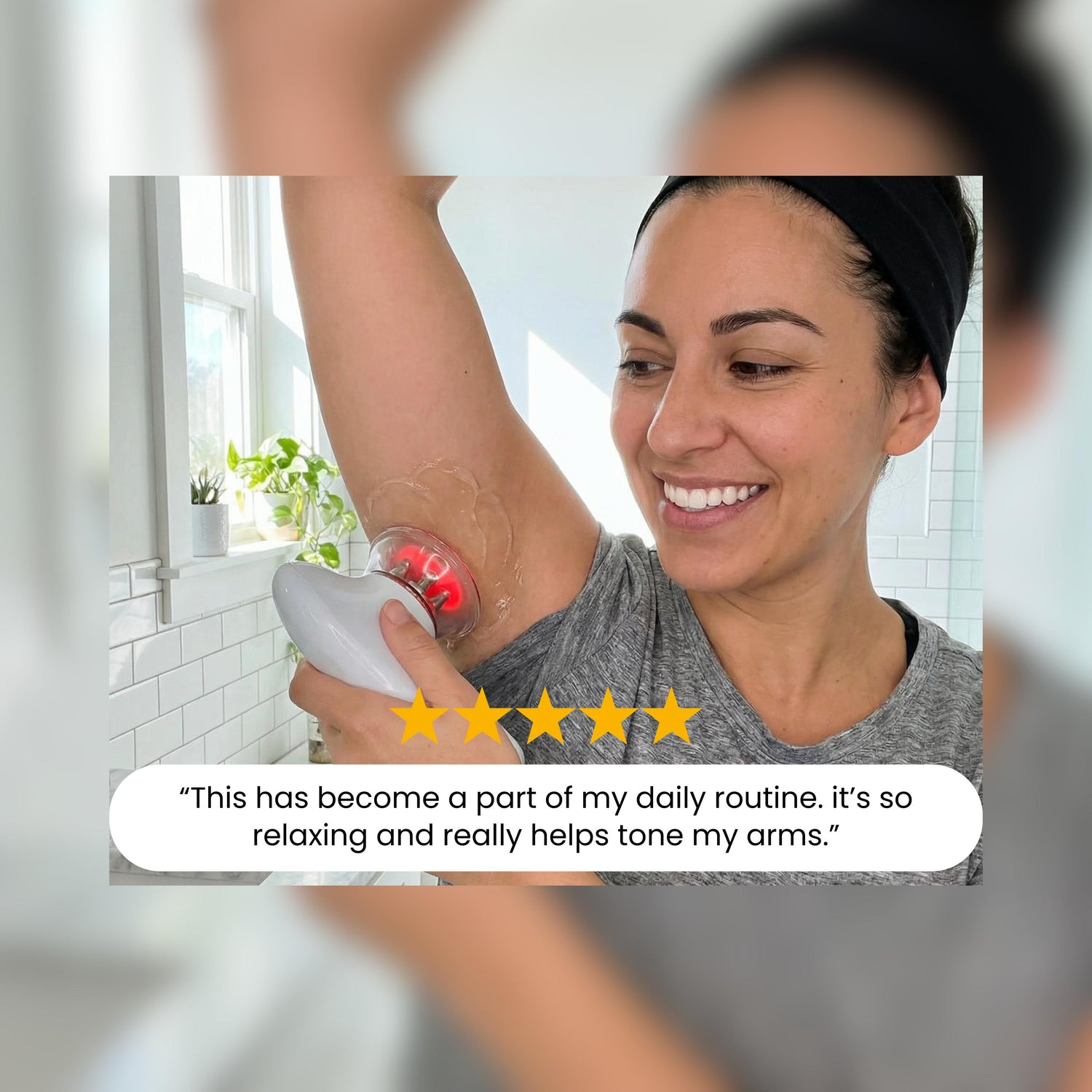 By combining targeted technologies, it helps improve overall tone and reduce the look of softness in the underarm area.